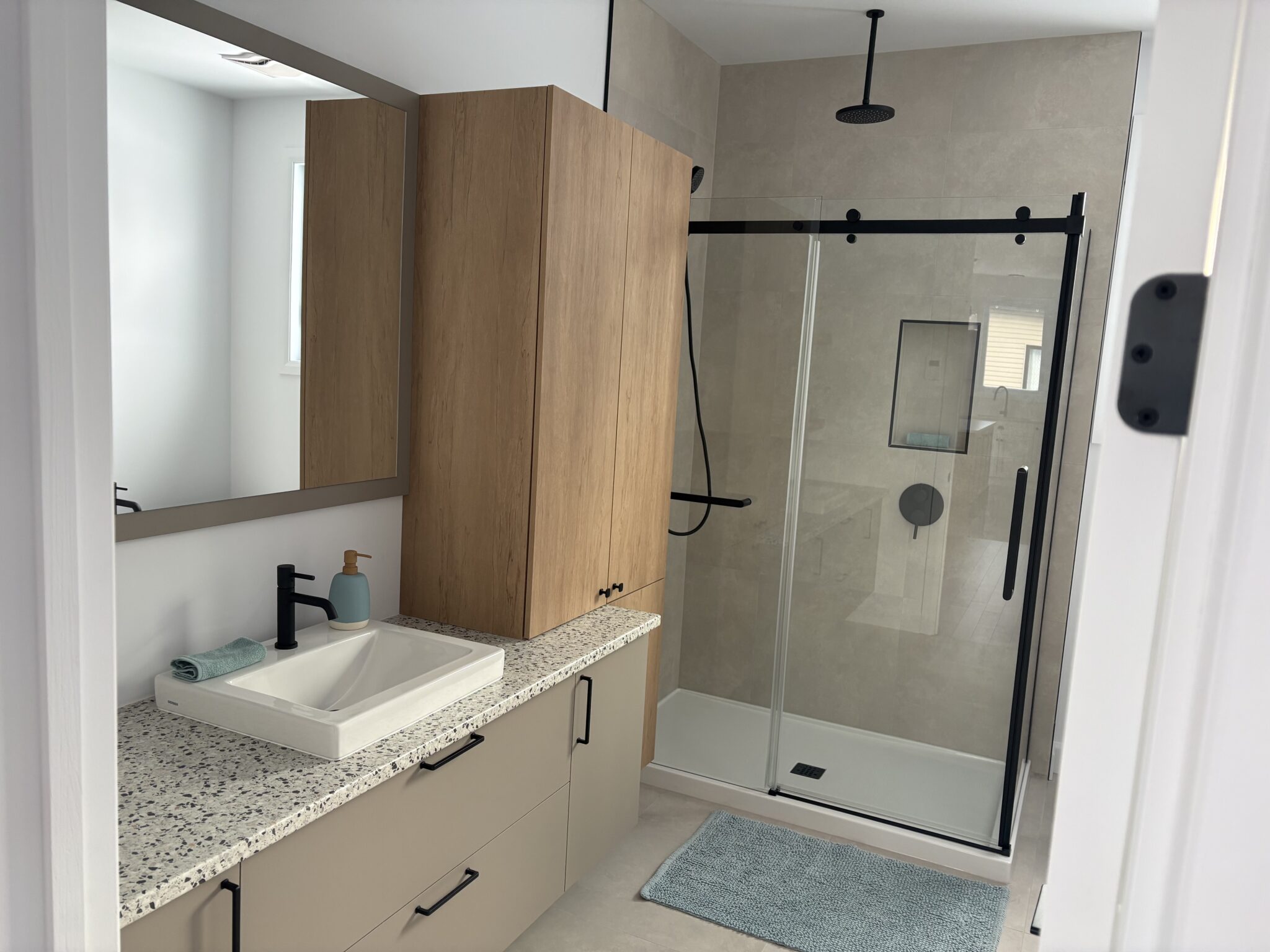 Plancher chauffant dans la cuisine et salle de bain du rez-de-chaussée